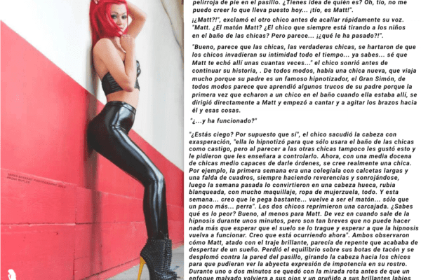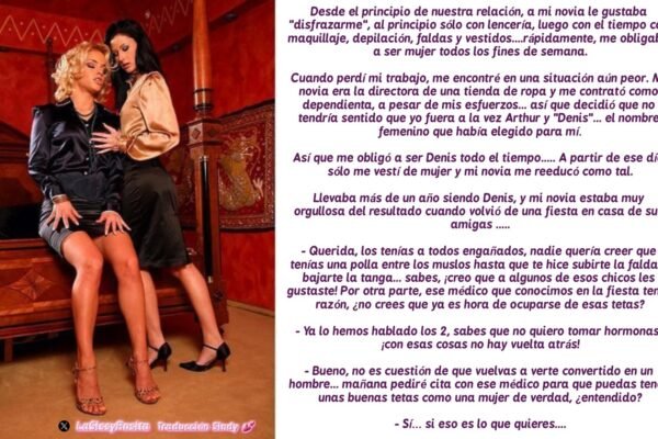 Acondicionamiento (48) Adoctrinamiento (15) Amas de casa (7) Apuesta (4) BabyPlay (1) BBC (12) BDSM (4) Bimbo (59) Boda (5) Brujería (7) Burdel (5) Castrado (1) Chantaje (8) Cientificos (4) Cirujano (36) Cis (19) Conflicto (29) Cornuda (6) Desistir (44) Despreocupado (44) Dibujo (3) Disfraz (2) Drogas (5) Esclava Sexual (24) Experimentos (5) Extravagante (87) Fe (1) Femdom (68) Femdom Black (2) Feminización (134) Feminización Express (36) Feminización Lenta (53) Forzada (85) Gustos Descubiertos (19) Hardcore (3) Hipnosis (28) Homofóbico (3) Hormonas (45) Humillación (99) Inconsciente (28) Intercambio cuerpos (5) IQ (5) Jaula Castidad (10) Juguete Sexual (5) Karma (4) Lezdom (1) Lezdom Black (1) Machista (7) Magia (6) Maledom (72) Manipulada (6) Maquina (1) Mascota Sexual (4) Merecido (46) No Forzado (46) No Merecido (17) No Sexoso (7) Organización (6) Otra personalidad (24) Pareja (6) Persona Importante (12) Piercings (1) Pildora (3) Por Amig@s (4) Por compañer@ (6) Por Emplead@ (4) Por Ex-Pareja (7) Por Hermana (6) Por infiel (1) Por Jef@ (12) Pornstar (4) Por Pareja (23) POV (1) Prissy (11) Prostituta (4) Racista (3) RDS (15) Reprogramación Mental (12) Ruina Total (4) Salón de Belleza (3) Secretaria (7) Secuestrado (17) Sin retorno (47) Sirvienta (7) Sissificada (78) Subasta (4) Subliminales (10) Sumisa (113) Tatuaje (1) TG (23) Trans (37) Transfobico (1) Universidad (1) Vendida (5) Venganza (31) Voluntario (30)